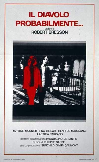 Il film si apre su un fatto di cronaca, il suicidio/omicidio di un giovane trovato senza vita nel cimitero di Père Lachaise. Il ragazzo in questione si chiama Charles e la sua vicenda si snoda attraverso un unico flashback, dove vengono rievocati gli ultimi sei mesi della sua vita. Un epilogo così tragico farebbe supporre un’esistenza contornata da oscuri presagi, in realtà Charles è un silente antieroe dall’aspetto cristologico, scelto da Bresson come testimone ideale degli orrori del mondo. Il suo eroismo astratto e intangibile consiste nel totale rifiuto di una società completamente allo sbando, nelle mani di un diavolo probabilmente, reso invincibile dalla totale indifferenza dell’uomo che incapace di reagire, stipula una diabolica alleanza tramutandosi nel suo complice prediletto. Le conseguenze del patto non si fanno attendere e sono facilmente ravvisabili nelle immagini impietose che ci vengono mostrate: inquinamento tecnologia, degrado, disprezzo per la natura, vere e proprie armi di distruzione di massa lanciate come bombe ad orologeria non si capisce bene in nome di cosa. Non sa dirlo nemmeno Bresson al quale non resta che accettare la sfida e scortare il suo svagato paladino sul terreno accidentato di una fatale via crucis. Le giornate di Charles si susseguono nell’inerzia più totale, nel godimento più sfrenato, nell’apparente rassegnazione di un giovane privo di ideali. L’ amore, la religione, gli slogan nulla sembra turbare il suo volto inespressivo, a parte un pensiero ricorrente: il suicidio, inteso come unico rimedio per sottrarsi alle fiamme ardenti di un inferno terrestre. Meglio andarsene quando si è in tempo, quando il libero arbitrio della giovinezza lascia spazio alla possibilità e volontà di decidere del proprio destino, anche se ciò corrisponde alla sua negazione.