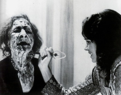 Nella scena del dormitorio, realizzato con dei teli tesi, mentre le ragazze dormono vediamo l’ombra di una donna, la direttrice Markos, stagliarsi su uno di quei teli. La donna si stende su un letto, ed inizia a dormire. E’ chiaro che in realtà stia assorbendo l’essenza vitale giovanile delle ragazze: molte di loro, in quel momento, iniziano ad agitarsi nel sonno, la stessa Susy, insieme a Sara, non riesce a prendere sonno. La Strega Nera ha bisogno di tanta gioventù per poter mantenere il suo corpo in vita, un corpo centenario, avvizzito da un potere corrotto. Il volto di Elena Markos era di un’anziana caratterista truccata magistralmente da Pier Antonio Mecacci. L’effetto fu realizzato applicando sul volto dell’attrice del lattice misto a semplice carta per alimenti (quel tipo di buste di carta marrone, un po’ spessa, che negli anni settanta serviva per il pane). L’effetto era completato con la coloritura della “pelle” e l’applicazione di fondotinta di varie sfumature.