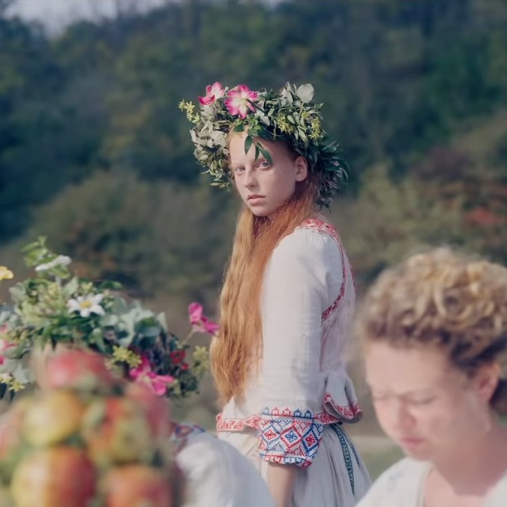 La festa è un insieme di riti che si svolgono in più giorni. I ragazzi si trovano proiettati in una realtà allucinata e allucinante anche a causa di alcuni ingredienti mescolati nei cibi che vengono offerti ai ragazzi. Midsommar viaggia insieme ai ragazzi, ma il viaggio è molto lento. Il film si dispiega con tempi dilatati, sembra prendere il ritmo lento e pacato della natura svedese, con le sue ampie foreste e l’interminabile giorno con il sole che non tramonta neanche di notte creando uno stato di straniamento nei ragazzi. Naturalmente i festeggiamenti nascondono dei risvolti sinistri che costeranno cari ai ragazzi ospitati. A parere di chi scrive la trama avrebbe potuto essere sfruttata meglio, anche perché la scenografia è splendida, con il paese ricostruito nei dettagli, con una fantasia di decorazioni che rende l’atmosfera bucolica e leggiadra ma anche inquietante.