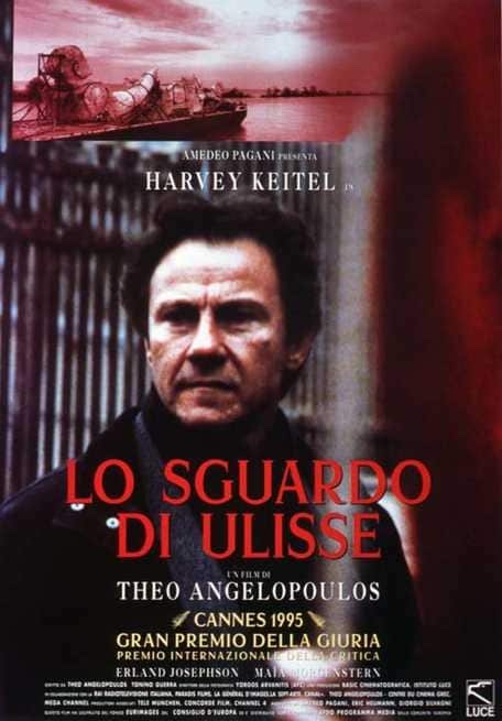 Il film è del 1995. È stato premiato a Cannes con il Gran premio della giuria, ed è il secondo film della trilogia dedicata da Angelopulos alla raccolta di racconti di Albert Camus L’esilio e il regno, dove, nella simbologia dell’autore francese, la vita costituisce una sorta di “esilio” che si consuma nel vano tentativo di raggiungere il “regno”, inteso come momento esistenziale di felicità, conoscenza, solidarietà. Gli altri due film della trilogia sono Il passo sospeso della cicogna (1991) e L’eternità è un giorno (1998). Tutta la trilogia è animata dalla necessità di varcare un confine per uscire dall’esilio, e dal mistero che oltre questo confine ci aspetta. Lo sguardo di Ulisse non è un film, come da alcuni è stato equivocato, sulla guerra nei Balcani, e per questo visto con dei limiti nei confronti di quella tragedia. È un film sull’incapacità dell’uomo di rimanere puro, fedele alla sua natura primordiale. È un film (altro motivo per cui è stato criticato) in cui i dialoghi sono asciutti, essenziali, poco colloquiali, dialoghi in cui le parole pesano perché hanno una valenza epica, ed è anche un film sull’impossibilità di amare, proprio per quei confini che l’uomo impone a se stesso e che poi cerca di varcare alla ricerca sconsiderata di una felicità perduta.