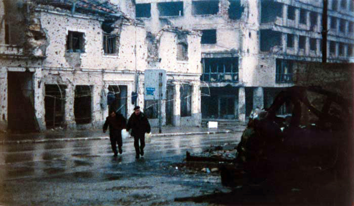 L’ultima tappa è una Sarajevo straziata dalla guerra,insidiata continuamente dai cecchini. Una Sarajevo che continua a vivere a dispetto della morte quotidiana che incontra lungo le sue strade. Lì, dopo un’affannosa ricerca, A. incontra Ivo Levi, il responsabile della cinemateca che costudisce i rulli non ancora sviluppati.Il ruolo è interpretato da Erland Josephson, che ha sostituito Gian Maria Volonté morto purtroppo nel corso delle riprese. Ivo ha provato a sviluppare i rulli, ma ancora non ha messo bene a punto la formula giusta degli acidi. Su esortazione di A., Ivo prova ancora e finalmente riesce a portare alla luce quello che cerca il regista.