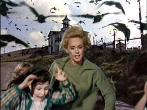 Melania viene accolta con freddezza da Lidya, che vede nella donna una minaccia nei confronti del suo rapporto “esclusivo” con il figlio Mitch. Già vedova, Lidya non vuole invecchiare da sola, ha paura di non poter resistere, di non avere le forze per continuare a difendere e guidare la sua famiglia. In effetti, gli assalti degli uccelli avvengono spesso dopo particolari scene di tensione emotiva quasi suggerite, più che mostrate. Questa tensione, questa sorta di astio nei confronti della nuova arrivata, è perfettamente incarnata dagli stormi di uccelli che selvaggiamente distruggono tutto quello che trovano sul loro passaggio. La gelosia di Lidya diventa quindi una forza capace di penetrare ovunque e distruggere anche inconsapevolmente. Lidya sa che non può controllare i sentimenti del figlio; in una sequenza, dopo un devastante attacco di passeri all’interno della casa, Melania osserva Lidya raccogliere, con una precisione meccanica e quasi maniacale, i frammenti di una tazza di porcellana, come a voler sottintendere una realtà ormai infranta alla quale la donna cerca inutilmente di porre riparo. I volatili come manifestazione dei timori della donna, delle tensioni che serpeggiano in casa Brenner. Come nel film “Il Pianeta Proibito” (1956), gli uccelli diventano quel Mostro dell’ID che nel film di fantascienza era generato da una potente macchina in grado di materializzare i mostri del inconscio: le paure, i timori, le frustrazioni e le gelosie: potenti sentimenti in grado di colpire indistintamente chiunque si trovi sulla loro strada. E gli uccelli non hanno limiti, colpiscono ed uccidono tutti uomini, donne e bambini.