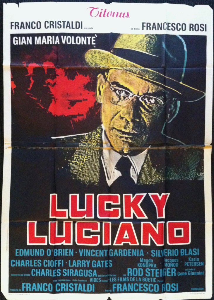 Nel 1973 ad un anno di distanza da Il caso Mattei, Francesco Rosi realizza Lucky Luciano rinnovando per la terza volta il fortunato sodalizio con Gian Maria Volontè. Massimo esponente e figura di spicco del nostro cinema di denuncia e impegno civile, Rosi ha sempre ricercato durante il suo lungimirante percorso artistico quella verità capace di rivelare e tributare un senso a una realtà usurata e manipolata da oscuri e inattaccabili poteri occulti. Nell’affrontare una delle figure più discusse e controverse del secolo scorso, il regista partenopeo si distacca nettamente dagli schematismi e dalla retorica tipici del biopic, per dar vita ad una complessa, ma incisiva narrazione a mosaico (già felicemente sperimentata nel film precedente) che coniuga sapientemente il suo realismo al gangster movie hollywoodiano, un genere più accattivante e meno accusatorio.