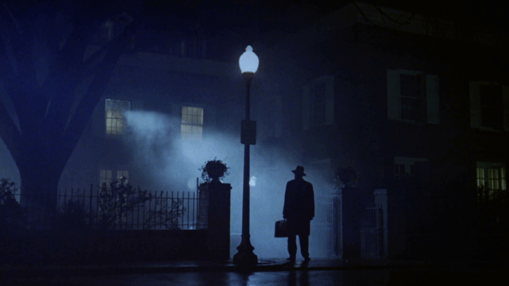 L’arrivo di padre Merrin alla casa dei MacNeil è un’immagine ormai iconica, giustamente utilizzata dalla produzione come manifesto del film. Il prete scende dal taxi, nella notte. Rimane a fissare l’edificio dove sa che il demone lo attende. La nebbia lo avvolge. Ma è solo nebbia, o forse è l’alito mefitico di Pazuzu, che ormai ha invaso il luogo, allargando il suo orrido dominio anche al di fuori delle mura della casa?