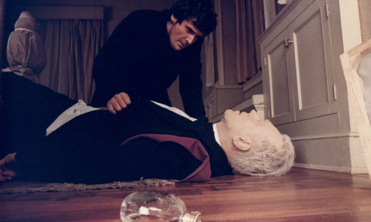 L’esorcista conosce la durezza del compito che lo attende, ma è deciso ad andare fino in fondo, anche se malato di cuore. Nella sequenza iniziale lo vediamo seduto in un bar dell’Iraq, sotto il sole cocente, mentre la vita della povera gente del posto va avanti. In quel momento ha un attacco di cuore, fuori campo si sente il veloce e ritmico martellare di alcuni fabbri. Il rumore dei colpi del martello sul ferro sembrano essere i battiti accelerati del cuore malato di Merrin, che si calma solamente dopo aver ingoiato la sua pasticca. In quel momento il martellamento dei fabbri sembra diminuire fino a fermarsi, uno di loro si volta a guardarlo asciugandosi il sudore sulla fronte, come a voler dire che il cuore del prete si è calmato e può tornare a palpitare normalmente. Ma è una calma apparente, perchè il fabbro ha un occhio cieco, quindi in realtà il male persiste. Il cuore di Merrin è saldo, ma allo stesso tempo minato dalla malattia.