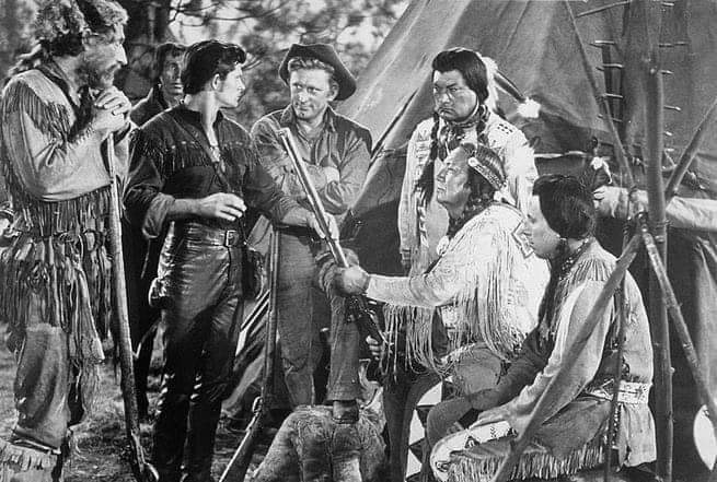 Kentucky, 1832. I cacciatori Jim Deakins( Douglas ) e Boone Caudill( Dewey Martin ) si imbarcano con il vecchio Zeb Calloway sul Mandan del capitano francese Jourdonnais per risalire il Missouri fino al Montana per raggiungere la terra dei Piedi Neri alla ricerca di pellicce, senza sottostare ai voleri delle compagnie. Con loro viaggia la principessa indiana Occhio d’Anatra( la bellissima modella nativa Elizabeth Threatt, qui al suo unico film) che farà breccia nel cuore di entrambi i cacciatori. Il viaggio riserverà molti ostacoli, ma ciò che a Hawks interessa è raccontare il contatto intimo dell’uomo con l’ignoto, rappresentato da una natura incontaminata, da un paesaggio definito dall’ assenza: assenza di alberi, case, in cui si è esposti a tutto, dove non ci sono posti dove nascondersi, ma nello stesso tempo è questa assenza a sua volta a costituire anche il suo fascino magnetico. Douglas si muove in questi spazi con disinvoltura, con l’espressione di chi la sa lunga, con il desiderio di dominare l’ambiente circostante, ma anche con la consapevolezza che ciò non è possibile.