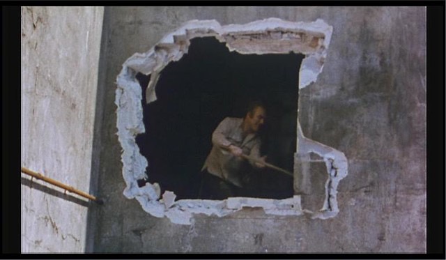 Tornato a casa, si mura in una stanza, distrugge la parete che si affaccia sul cortile comune tra i vari palazzi, così da rendersi visibile al mondo esterno (un vicinato povero e disgraziato quanto lui), ricrea l’ambiente di una caverna e dà il via a una rivolta privata ma contagiosa che coinvolge sempre più persone, tra cannibalismo (se manca il cibo perché non arrostire due guardie mandate a reprimere la rivolta?) e sesso incestuoso e orgiastico.