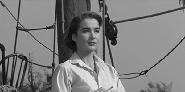 Il Gill-man si invaghisce della donna, forse vedendola come una della sua specie, un esemplare femminile che si muove con agilità nell’acqua. Rimane a fissarla stordito dalla sua bellezza, e anche se non possiamo vedere realmente gli occhi della creatura, il regista gira delle inquadrature in cui il desiderio del mostro viene trasmesso allo spettatore con potenza. In effetti i due uomini sono, di fatto, i due rivali del mostro: Kay diventa così l’oggetto del desiderio conteso tra tre maschi, anche se di specie diversa.