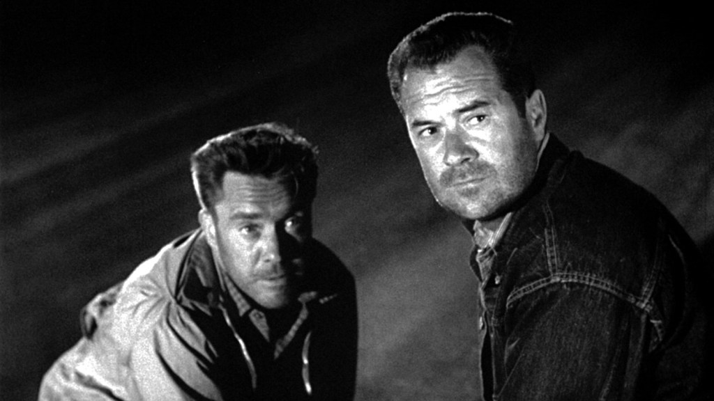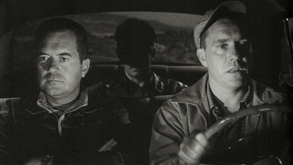 Tuttavia le “volute” omissioni vengono ben compensate dalla presenza di un oggetto che, se da una parte simboleggia ed amplifica la virilità maschile, dall’altra smaschera le effimere certezze di un universo popolato da spregevoli individui. Myers non può fare a meno, non può vivere e immaginare una vita senza una pistola da tenere nella tasca e impugnare alla prima occasione. In un dialogo illuminante in cui si lascia andare a ricordi di un’infanzia disastrata, dichiara come si possa comprare tutto ed avere il mondo in mano con un grilletto puntato. Ma quando Roy gli domanda se si è mai trovato dall’altra parte, lui risponde che non succederà mai. In realtà Myers è già dall’altra parte abbindolato dalle sedicenti e ingannevoli tentazioni di quell’arma che si erige a femme fatale. La mancanza del gentil sesso è stata spesso fraintesa e la Lupino si è trovata più volte al centro di un equivoco atto a sottolineare la poco incisiva partecipazione alla causa delle donne. In realtà La belva dell’autostrada possiede una sottile e pungente femminilità che si dipana e rimarca la sua assenza/presenza in quell’arido e sterile deserto percorso dai suoi protagonisti accomunati dallo stesso sesso. La mancata presenza femminile combacia con la durezza di una terra infeconda, senza vita destinata irrimediabilmente ad una tragica e irreversibile perdizione.