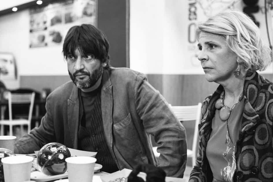Lo sguardo pungente del regista non risparmia nessuno: clero, ospedali, artisti, editori, genitori. Come non dimenticare, a tal proposito, la figura della mamma, ossessionata dai selfie, vedova più che allegra, innamorata persa di un artista performer molto più giovane di lei, artista che assembla emozioni con i mobili Ikea, o il professore che aveva ammirato all’università, che ritrova incollato ai videogiochi, o il prete disilluso e dedito all’alcol. Personaggi fuori luogo, strambi, incomprensibili che popolano luoghi alienanti caratterizzati da bancomat impazziti, fast food con menù che non si possono modificare, in cui niente è definito, è certo se non questo fischio all’orecchio che continua a sentire solo lui, se non questo funerale fissato alle sette di sera di questo Luigi di cui ignora l’identità.