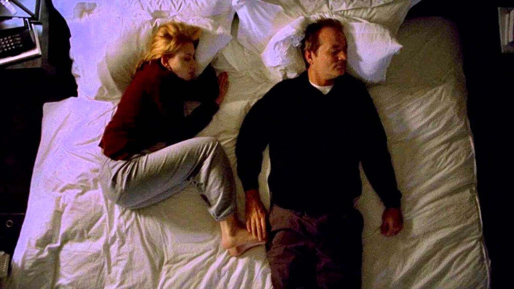 E Lost in Translation è proprio l’incontro fra due solitudini: quella di Charlotte, una giovane donna che ha appena finito i suoi studi di filosofia a Yale e accompagna il marito fotografo in un viaggio di lavoro, e quella di Bob, un tempo attore di successo, impegnato ora solo in spot televisivi. Nella noia di giorni trascorsi in solitudine a causa degli impegni pressanti del compagno, la giovane si chiede cosa fare della sua vita – “sto davvero perseguendo la mia auto-realizzazione?”; l’uomo, invece, vive l’incertezza di un delicato momento di passaggio, la temibile ‘crisi di mezza età’, e si interroga sul proprio futuro professionale e affettivo; entrambi si trovano alle prese, in definitiva, con la ricerca di un nuovo spazio nel mondo e di un linguaggio autentico e personale.