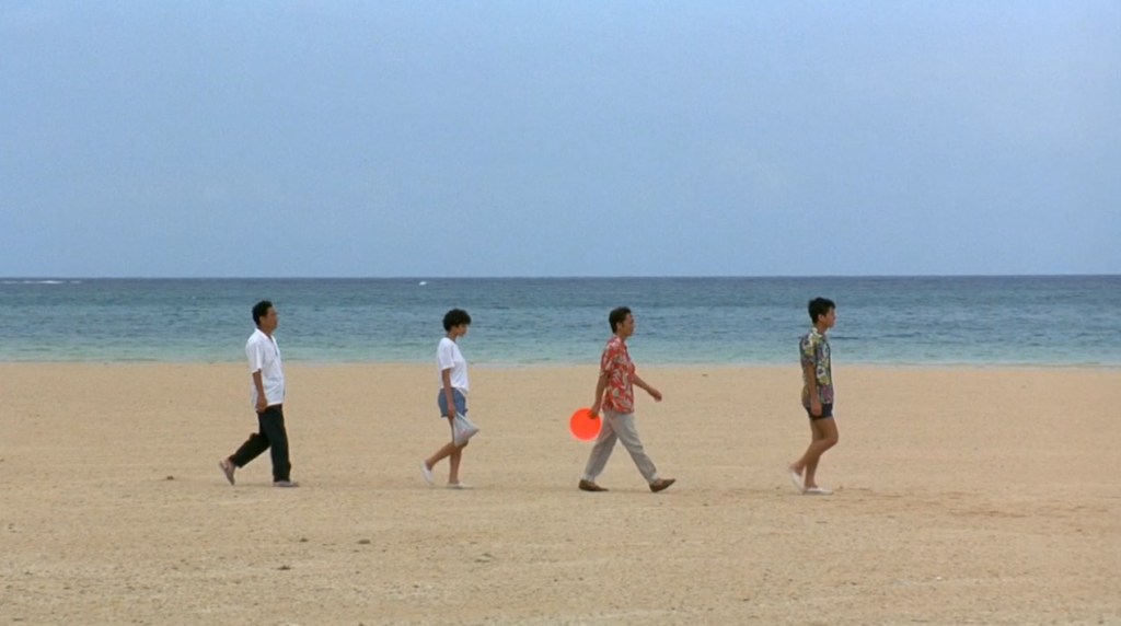 Emblematica in tal senso la parte centrale del racconto, che vede il gruppo di esuli Yakuza condurre una serie di giornate dedite al divertimento spensierato sulla spiaggia, la quale funge da luogo di pace, dove il tempo si ferma e l’attesa di una probabile morte viene vissuta con attimi di scherzi e sorrisi. Una quiete temporanea da una routine di violenza e morte, che Kitano alleggerisce con una comicità a tratti “keatoniana” e che poi non esita a interrompere bruscamente nel momento in cui il destino reclama il suo tributo.