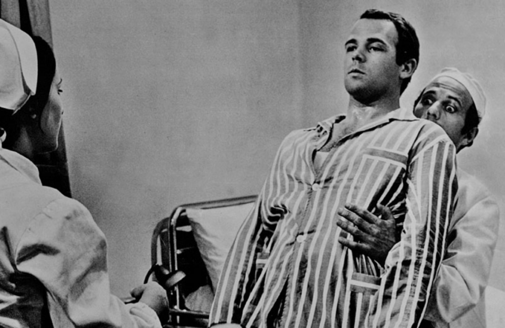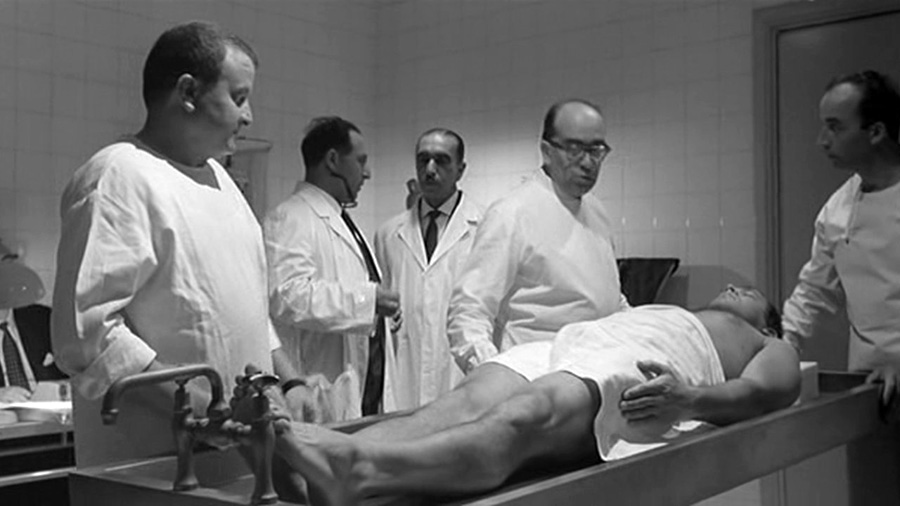 Tuttavia, trattandosi di Gregoretti, giornalista con una solida carriera televisiva alle spalle, l’esperimento non può limitarsi alla sola rivisitazione di un genere poco frequentato dalla nostra cinematografia, ma va pensato all’interno di un contesto socio-culturale plasmato sul disumano “credo” della produttività, del consumo di massa, della economizzazione della politica e della rivoluzione neocapitalista. Concezione di chiara matrice a stelle e strisce, vincolata alla pura logica del profitto. In questo robotico scenario, dove la produzione in serie e l’uso smodato della tecnologia prendono il sopravvento, allontanandosi da una realtà contraddistinta da grande intensità di lavoro e bassa produttività, ha luogo la surreale resurrezione di Angelo Trabucco (lo straordinario “dormiente” Renato Salvatori), operaio della fabbrica SMS, cannibalizzato dai famigerati tempi moderni chapliniani.
