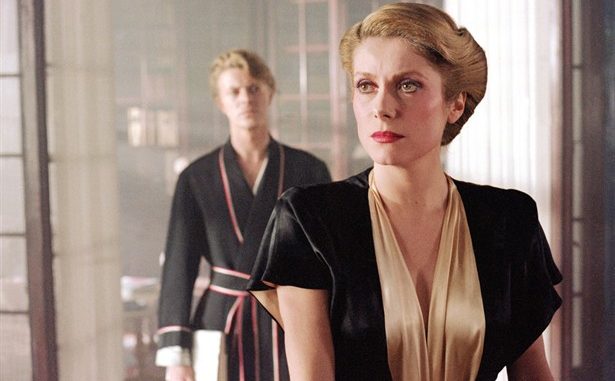 “Bela Lugosi is Dead” dei Bauhaus apre su un’atmosfera scura, una disco music illuminata solo da lampi di luce che evidenziano due figure, che sebbene siano ben amalgamate con la bolgia infernale in cui sono capitati, si distinguono per i movimenti felpati, i sorrisi accennati, lo sguardo predatorio dietro gli occhiali a specchio e si intuisce da subito che c’è una caccia in atto. Loro sono i lupi balzati in un recinto stracolmo di pecore, una delizia per il palato. Tony Scott fa arrivare subito il messaggio, sempre dosando al meglio colori, luce, sequenze e musica: lascia i dialoghi ridotti al minimo e chiede ad altro di parlare. Riesce in questo modo a far scivolare le sensazioni direttamente all’interno, inondando di incertezza, angoscia e attesa tutto il tempo. Le immagini si alternano velocemente, il senso di oppressione si fa sempre più intenso, finché non si scopre a chi appartiene. È di Miriam, la bellissima Miriam (Catherine Deneuve), che vive la sofferenza dell’Immortalità e quella del suo compagno John (David Bowie), destinato a una fine crudele.
