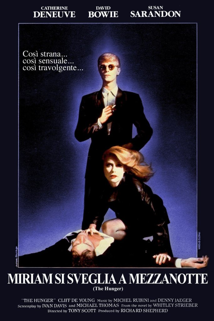 Sono varie le tipologie di Horror , esiste lo “splatter” pieno di sangue e scene cruente, lo psicologico, che scava a fondo nelle paure invisibili, esiste quel tipo di cinema horror che affonda gli artigli nelle manie dei più sensibili, lasciandoli coi sudori freddi nella notte. Poi c’è Miriam si sveglia a mezzanotte – The Hunger, film del 1983, cui non si addice nessuna di queste definizioni. Opera prima, per quanto riguarda i lungometraggi, del fratello più giovane di Ridley, The Hunger è anche il suo film meno ricordato, a confronto con Top Gun o Spy Game, eppure è bene metterlo in evidenza perché conserva un fascino tutto suo e un brivido che rimane dentro, nel guardare Catherine Deneuve nei panni inediti di una dark lady con gli occhi magnetici. Sebbene sia annoverato tra i film sui vampiri, bisogna fare le dovute precisazioni: è un film sull’immortalità, sul dono della vita eterna, sul Tempo e sul tentativo inutile di superarlo, per conquistare l’eterna giovinezza.