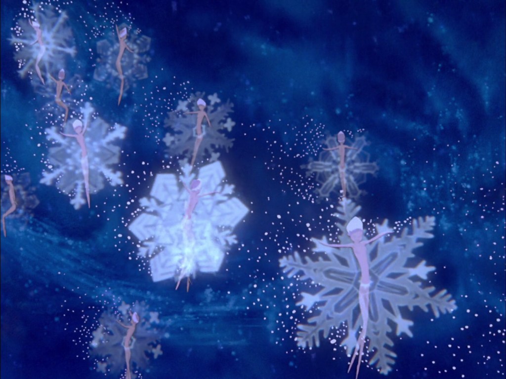 Segue poi la “Suite dello Schiaccianoci” di Čajkovskij. Gli animatori immaginano un susseguirsi delle stagioni incarnandole in spiriti dei boschi, fate, fiori dalle sembianze umane, sinuosi movimenti di pesci dalle fantasmagoriche pinne. Un trionfo di delicatezza e poesia che si sublima nel finale con il “Valzer dei Fiori”, quando le piccole fate dell’inverno cristallizzano nel ghiaccio foglie e fiori. In questa sequenza si possono ammirare anche sperimentazioni di riprese particolari: il passo finale delle fate “cristalli di neve” richiese infatti una particolare tecnica di ripresa in quanto i cristalli delle fate, usati come dei tutù, sono in realtà creati dal vero, con precisi cristalli ricostruiti in studio e poi inseriti nell’animazione dei corpi delle fate.