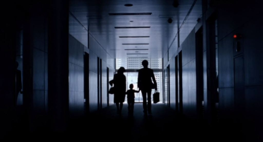 Dopo averci introdotto in questo nucleo famigliare, nella sceneggiatura irrompe la crisi, la perturbazione che scardina l’equilibrio: una telefonata dell’ospedale suona inattesa come i colpi della Quinta di Beethoven, preannunciando la rivelazione di uno scambio di neonati che coinvolge i coniugi Nonomiya.