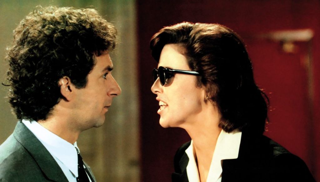 Al tempo delle riprese Nuti e la Burt erano una coppia anche nella vita. Per lei bellissima modella statunitense, sconosciuta e completamente a digiuno di cinema la liaison divenne occasione ideale per il debutto sul grande schermo. Gianfranco Piccioli, produttore del film storse un po’ il naso per quella scelta azzardata che Nuti riuscì ad imporre con eloquente silenzio. Il risultato gli darà ragione, la Burt dietro la sua sfumata e giunonica bellezza veste alla perfezione l’inquietudine e la confusione di una donna moderna, cinta da quella gonna tanto cara al suo autore, con la quale gioca a sottomettersi, pur restando padrona del gioco. Una laconica dark lady, capace con i suoi pericolosi bluff, con il continuo rimescolare le carte, con continui tira e molla di trasformare Caruso in un potenziale omicida. Un bacio e una pistola, tutto sembra ruotare intorno a questi due elementi che solleticano di continuo la vicenda. Ma se il primo consente a Nuti di costruire esilaranti duetti come quello insieme al “grande vecchio” Novello Novelli, brigadiere venato di surreale sadismo che gongola dei ripetuti arresti, il secondo assume le sembianze non solo metaforiche di un ideale alter ego. Nella delirante scena all’interno del supermercato Caruso si aggira con la pistola puntata alla ricerca dell’ amante perduta. Una volta “intercettata” le urla tutta la sua disperazione, le rinfaccia le inaccettabili motivazioni e rivendica il sacrosanto diritto di vivere con sofferenza la parte finale di una storia d’amore così importante, quella dove la consapevolezza di essere lasciati si materializza nella definitiva seppur inaccettabile certezza. Perchè la parte finale di un amore non può essere liquidata senza un perché, ma va vissuta e sofferta con la stessa intensità di un inizio idilliaco.