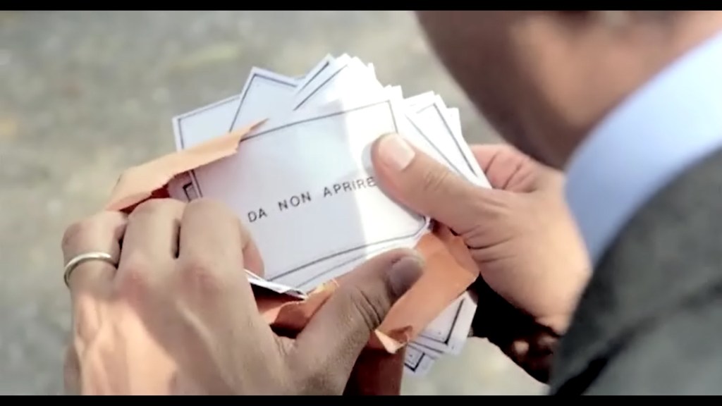 Come l’ennesimo pacco bomba arrivato nel suo ufficio, rientrato al lavoro, troverà un enigmatico messaggio lasciatogli dal suo “migliore amico” prima di morire: in un gioco di buste chiuse e bigliettini funebri, le ultime volontà del suo amico ormai morto si esprimono in un messaggio incomprensibile e anziché offrire una chiave di lettura di quanto avvenuto, sembrano solo confermare la follia di cui Gualtiero era vittima. Nessuna spiegazione, nessuna risposta ai dubbi ed alle paure sul senso della vita e della morte. È questo l’ultimo amaro sguardo sul mondo del cinema di Elio Petri, che morirà per un male incurabile tre anni dopo Buone notizie: non sappiamo più vivere e abbiamo paura di morire.