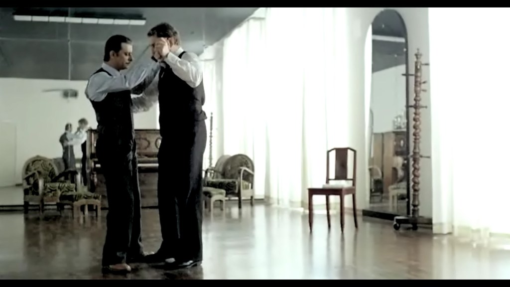 Una delle scene più belle e malinconiche del film è proprio la scena in cui, prima di recarsi nella clinica psichiatrica dove Gualtiero sta per ricoverarsi, i due uomini ballano insieme un Walzer. Come spiega traducendo un po’ liberamente Gualtiero, la parola Walzer “vuol dire ballare strisciando”. Ci si può illudere di ballare e invece si sta strisciando, come vermi. Una scena struggente (la musica, ancora una volta perfetta in un film di Petri, è di Morricone), ma in cui i due non trovano consolazione: questi maschi non sono capaci di un vero abbandono, anzi, ciascuno nasconde qualcosa di molto importante all’altro (guarda caso, qualcosa che riguarda le reciproche mogli).