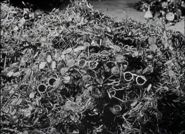 Il film mostra materiali d’archivio incentrati sulle atrocità compiute da nazisti, sulla vita nei lager e sugli internati richiamando l’attenzione soprattutto su questo “gioco gerarchico incomprensibile” tra uomini rasati, numerati, tatuati, denudati e uomini mossi unicamente dall’odio cieco, esecutori di un potere che si sfoga sugli inermi. Il male rappresentato in questo film non è solo presente nelle immagini agghiaccianti che scorrono impietose come quelle dei cadaveri ammassati coi bulldozer, delle file dei bambini silenziosi, delle volute di fumo che fuoriescono sotto un cielo muto, delle masse con le loro inutili valigie che attraversano portali maestosi “che saranno varcati una sola volta”. Il male va anche a braccetto con l’assurdo, con gli slogan che sembrano sberleffi (“Il lavoro rende liberi”, “L’igiene è salute”), con un’orchestra sinfonica che suona nella neve, con le piante rare coltivate in una serra da Himmler, con la schizofrenia dei pianificatori dello sterminio, padri di famiglia e criminali glaciali.