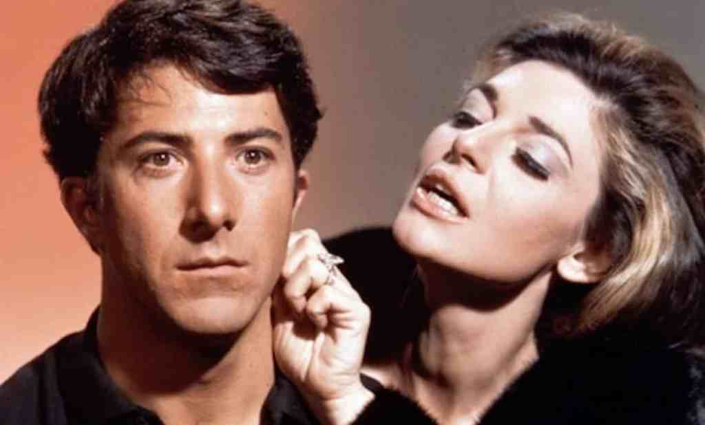 Tra loro, l’inquieta e ancora affascinante signora Robinson, moglie del socio del signor Braddock, senza tanti preliminari si propone come partner sessuale al timido Benjamin, ancora inesperto di donne. Lui dapprima si ritrae, anche perché trattasi della madre di Elaine, la ragazza verso cui viene sospinto dagli invadenti genitori, ma poi accetta l’offerta, col che riempie almeno un po’ il vuoto della propria vita. Tutto sommato la relazione con Mrs. Robinson è comoda, non prevede complicazioni sentimentali, è in armonia con quella sua stagione di tempo sospeso, immobile, galleggiante. Del resto Benjamin è abituato ad obbedire ai più anziani, e continuerà a dare rispettosamente del lei alla matura compagna di letto. Quando tenta di ravvivare gli incontri in albergo con un minimo di conversazione, non ottiene altro che l’inasprimento della donna, insofferente a deroghe dal ruolo previsto per Ben. Non solo: gli fa promettere di evitare ogni contatto con la figlia Elaine, temibile concorrente.