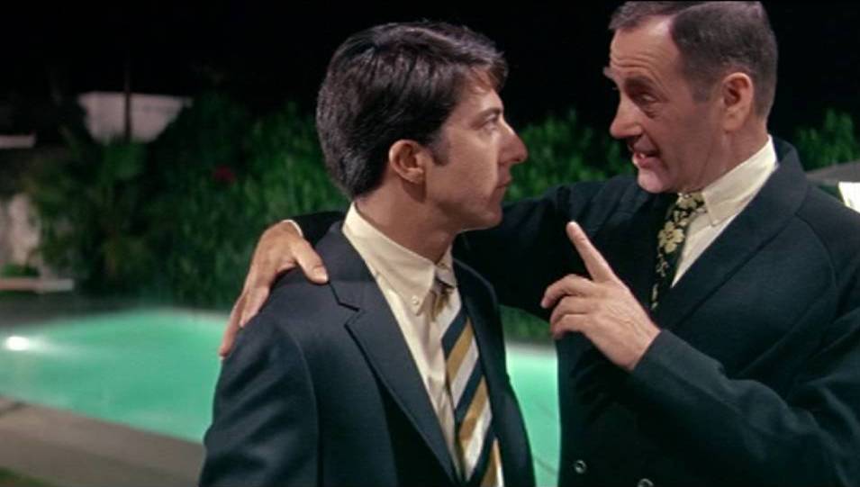 Tuttavia il destino dovrà compiersi; è fatale che Benjamin incontri la ragazza, anche perché è ciò che tranne la Robinson vogliono tutti: i genitori, la meccanica sociale, che non mollano la presa. Il problema è che i due virgulti s’innamorano davvero, e a prima vista. Ben lascia la madre per inseguire la figlia e farà di tutto per averla, con la spider e con la croce. La raggiungerà, perché con lei la sua vita riacquista senso, in lei ritrova se stesso. La sfida di Nichols è quella di rendere credibile l’attecchimento di questo amore, germogliato spontaneamente in un clima arido e ostile all’amor puro, denunciando in parallelo, senza enfasi retorica ma con raffinata ironia, le patologie di una generazione stordita dal boom economico, incastrata in comportamenti stereotipati e nevrotici, incapace di comunicazione vera (non solo la signora, ma anche il signor Robinson evita finché può di aprire gli occhi e le orecchie, sia con la moglie che con Benjamin, costretto per esempio ad accettare da lui sempre whisky invece del richiesto bourbon).
