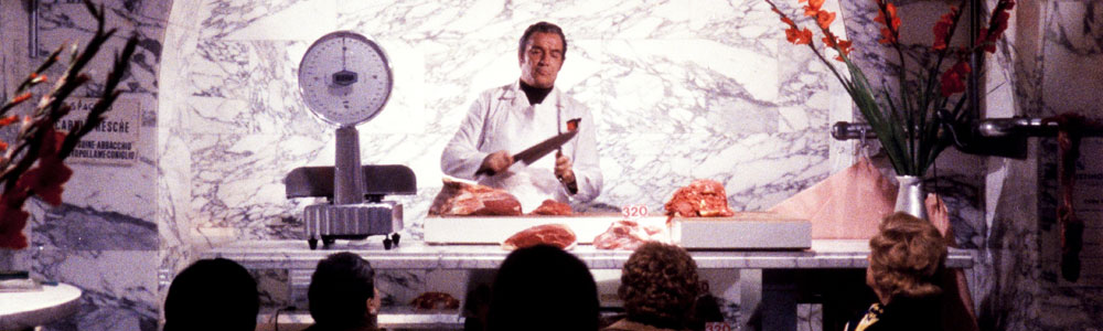 Ugo Tognazzi, il suo antagonista, è il macellaio, il disgustoso e ricchissimo borghese che si è fatto da sé avendo come unico scopo nella vita quello di arricchire ad ogni costo. Impegnato in innumerevoli attività più o meno legali, che spaziano dalle bilance truccate della macelleria alle truffe alle assicurazioni, alla speculazione edilizia, fino ad arrivare all’alta finanza, è il nemico di classe per eccellenza. La sua attività di macellaio è la metafora perfetta del potere del denaro, lo strumento più capace di plasmare tutte le relazioni umane: “Io me sporco le mani perché l’altri se scordino quello che sono: assassini! Sì, assassini. Assassini! E nun me volete paga’ pe’ questa essenziale, grande, fondamentale funzione, che è quella di uccidere per voi?”
