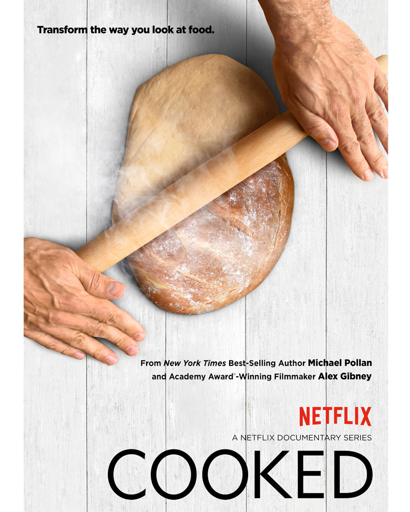 Nonostante l’overdose di programmi di cucina offerta dalla televisione, cui si aggiunge la marea di prodotti disponibili sulle piattaforme in una specie di pornografia del cibo, la serie Cooked, basata sull’omonimo libro di Michael Pollan (Cotto – Storia naturale della trasformazione) e disponibile su Netflix, riesce ad imporsi come qualcosa di diverso e anzi di sostanzialmente contrapposto alla rappresentazione dominante della cucina: mentre aumentano le ore che gli spettatori trascorrono mediamente guardando programmi di cucina, si riducono sempre più drasticamente quelle dedicate a cucinare il proprio cibo.