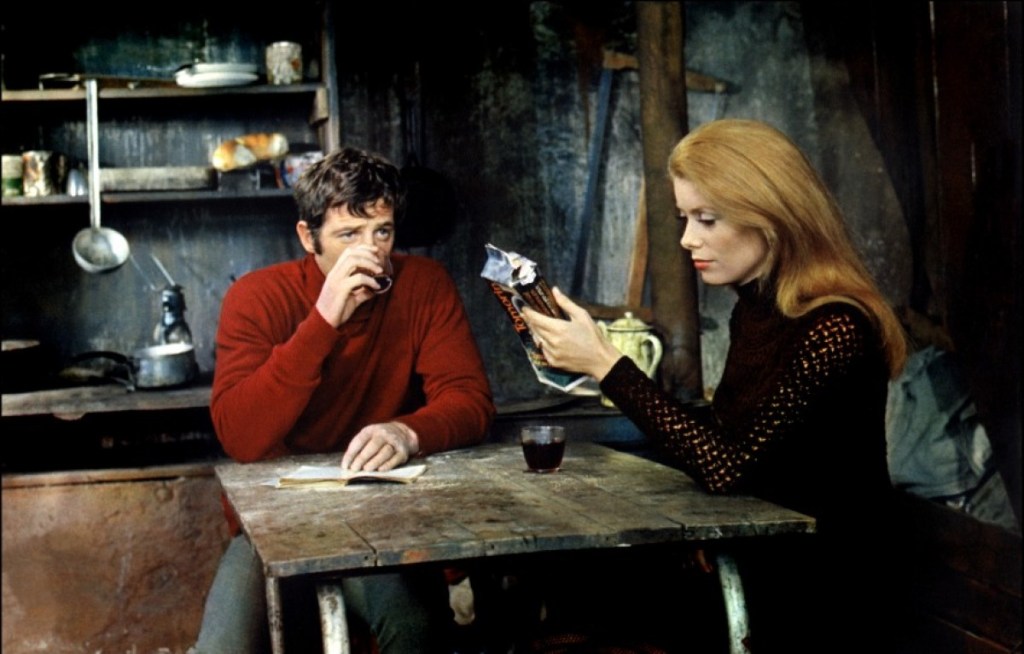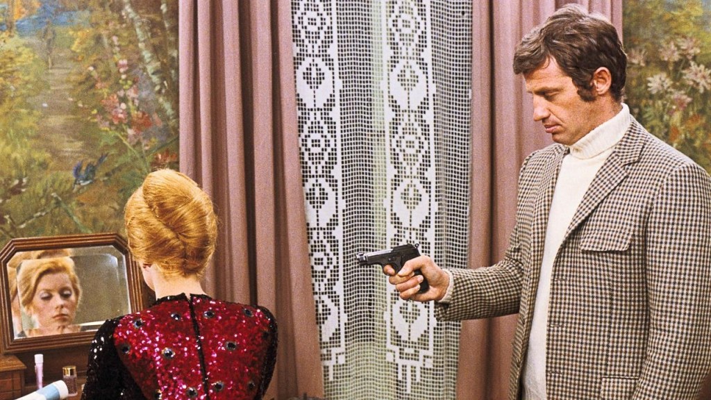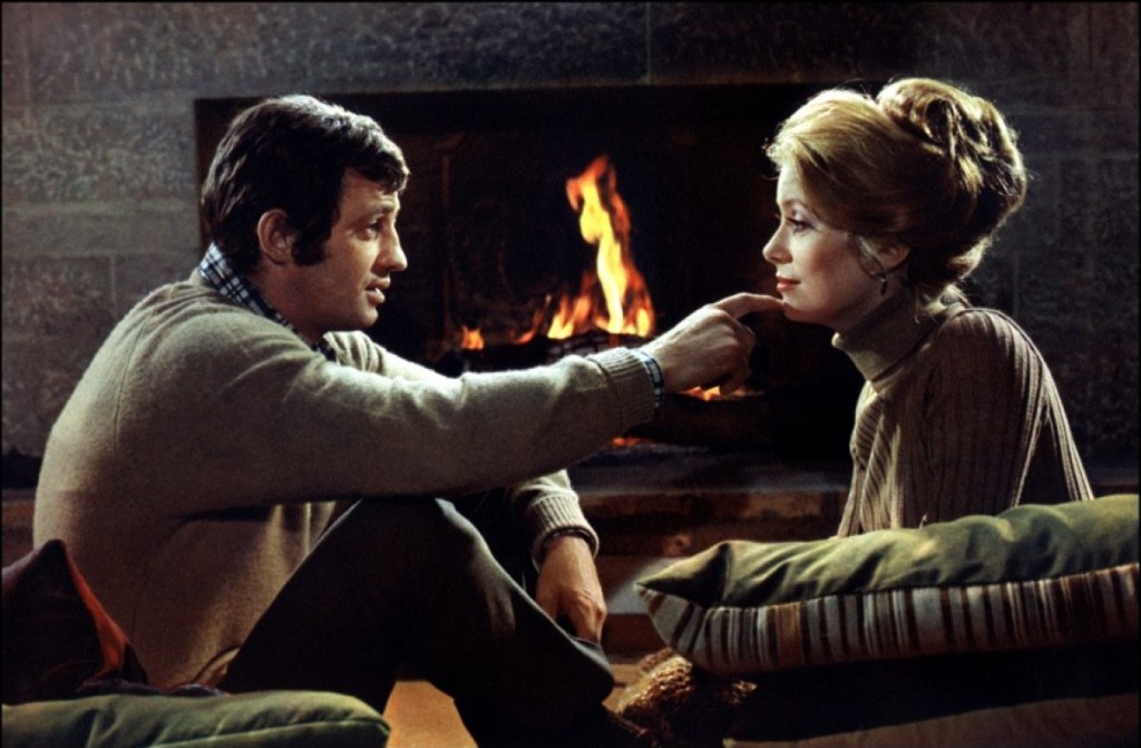 Un po’ Kim Novak in Vertigo, un po’ Tippi Hedren ne Gli uccelli, un po’ Marnie, un po’ Notorius ed ecco che Marion (un nome che non lascia scampo) la dark lady creata da Truffaut sperimenta direttamente sulla sua pelle le magnifiche ossessioni cinematografiche del suo autore. La complicità e adorazione verso Catherine Deneuve, con la quale in quel periodo intreccia una relazione, è totale, la macchina da presa sfiora il suo volto diafano, cattura i suoi sguardi, lambisce e denuda il suo corpo senza emettere nessuna sentenza. Un’assoluzione quasi inevitabile per una creatura così adorabile, capace di stregare uno degli attori più in voga del momento e uno dei registi più geniali della settima arte. Truffaut riversa su di lei ossessioni, ma anche laconiche mancanze. Per la prima volta fa a meno dei bambini, operando un amorevole tradimento verso se stesso e verso il romanzo per focalizzarsi con maggior accortezza e lucidità sulle forzature e storture di un amour fou, molto vicino a un certo Pierrot godardiano (di certo la scelta di Jean-Paul Belmondo è tutto fuorchè causale). Rispetto al romanzo di Irish “il giovane turco” apporta delle sostanziali e inevitabile modifiche temporali e drammaturgiche fino a trasformare una storia di crimine e sangue in una macabra fiaba avvolta da un celestiale manto nevoso.