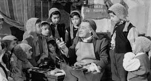 Ma prima di arrivare a questo punto, possiamo fare due piccoli passi indietro e tornare alle prime „gags“ del film e cioè intanto alla scena del nobile con la erre moscia (Mario Castellani) a cui Cicciacalda ha fatto due scarpe destre. Quando il nobile gli fa notare, dopo vari e inutili tentativi di Cicciacalda di forzarlo a indossare una scarpa che non vuole entrare, che ha confezionato due scarpe destre, il ciabattino gli risponde: “Ah si? E da quando in qua facciamo due piedi e due misure? Deforme, invertito, che al posto del piede destro c ha il piede sinistro!”. E poi andiamo ancora alla scena del pignoramento, in cui Cicciacalda tenta di fare un calcolo maggiorato del valore delle sue suppellettili casalinghe, pretendendo addirittura di farsi addirittura rimborsare dall’ufficiale del balzello (Franco Ressel)!