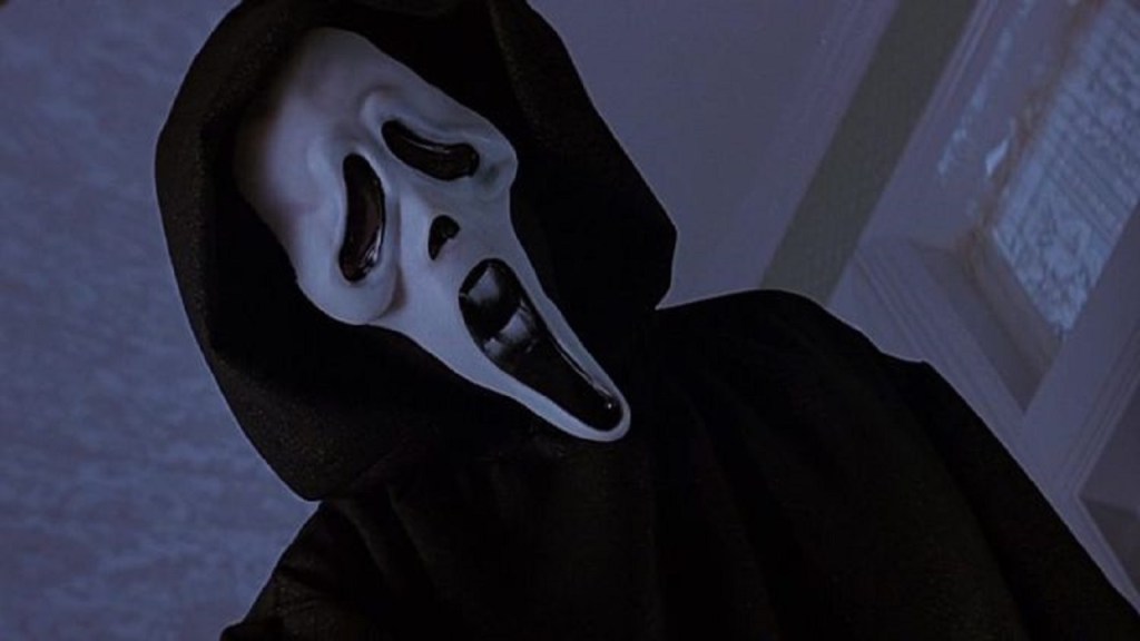La maschera del folle richiama all’immagine dell’ ”Urlo” di Munch. Un’idea geniale che regala al cinema horror un’altra icona (la seconda per Craven, dopo Freddy Krueger). Ma in questo caso la maschera assurge a puro simbolo dell’ignoto. Non ci troviamo infatti davanti ad un killer definito, con una storia, una genesi, come poteva essere appunto per il Krueger della serie “Nightmare”, pedofilo e assassino bruciato dai genitori delle piccole vittime, o come il Michael Myers di “Halloween”, segnato sin da bambino dal Male che alberga nella sua mente. Ghostface è veramente un fantasma, che può nascondere dietro la sua faccia chiunque. Tutti, nel corso della pellicola, possono essere sospettati di essere il killer, per questo la maschera diventa un simbolo di astrazione, di annullamento della personalità. In effetti, Ghostface è, nelle diverse pellicole che compongono la saga, impersonato da diversi assassini. Ma ormai il mito è creato, e basta la comparsa della maschera a far provare il brivido allo spettatore. Chiama al telefono le sue vittime, e gioca con loro. Pone domande sui film horror, e chi sbaglia la risposta muore. Ma anche chi indovina, forse, non è sicuro che avrà salva la vita…