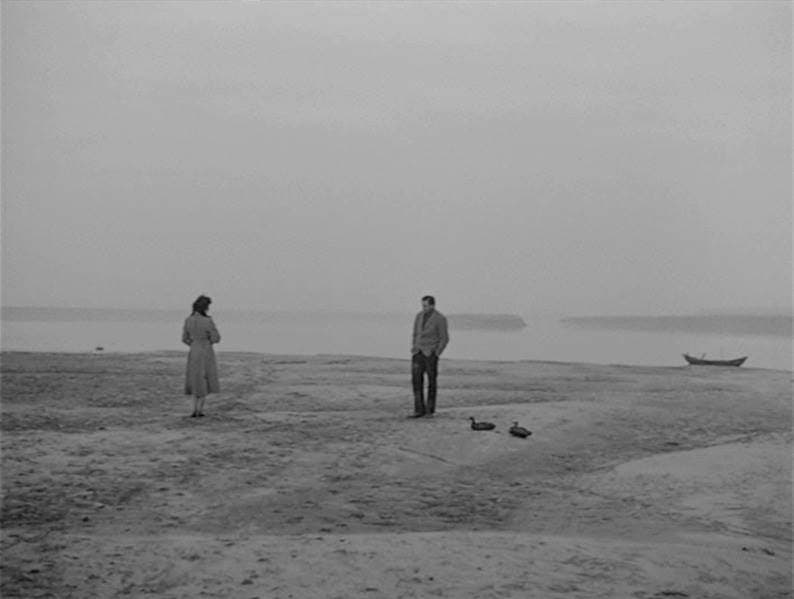 Storia di un’ossessione amorosa, di una caduta, cronaca di una disperazione, di una lenta agonia: Il grido è stato definito in tanti modi. Il film è soprattutto la storia di un uomo solo, svuotato che cammina in un paesaggio grigio. Antonioni non poteva scegliere un fondale più suggestivo della pianura del Po, che esalta la malinconia del personaggio, il suo grigiore interiore. Il cielo brumoso, la nebbia che rende tutto evanescente, le strade fangose, gli alberi ridotti a scorze senza fogliame fanno tutt’ uno con il volto angosciato del protagonista, traducono la solitudine interiore dell’individuo. Antonioni è straordinario nel sondare l’animo umano accostandolo al paesaggio, è abile nel radiografare le inquietudini dei personaggi senza abbandonare eleganza e seduzione.