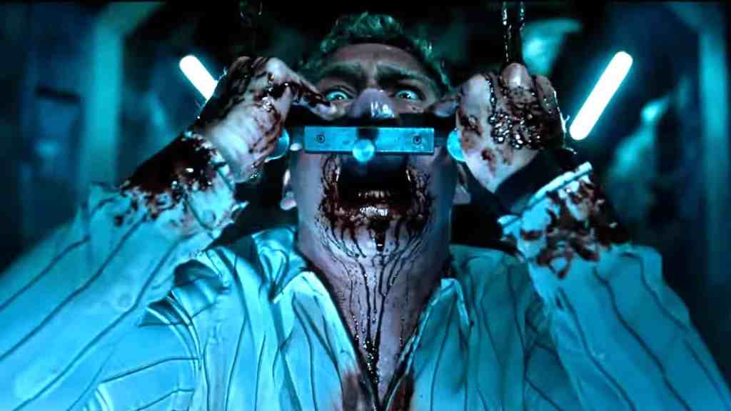 Ed in questo film la furbizia degli sceneggiatori è doppia: la vittima deve menomarsi per salvarsi, altrimenti la trappola lo ucciderà. Ma ecco il perverso meccanismo mentale mettersi in moto. Vogliamo vedere l’effetto della menomazione, vogliamo che la vittima si strappa la lingua, ma al tempo stesso vorremmo che non lo faccia, perché così vedremo la trappola agire e devastare il corpo. Furbamente il regista fa arrivare la vittima all’estremo, quindi ci mostra la lingua strappata, ma al tempo stesso dilata il tempo, così da fare in modo che la menomazione arrivi solo al momento estremo, quando ormai è tardi per fermare la trappola. Appaga in questo modo il piacere sadico (sopito e mai effettivamente confessato) e il voyeurismo dello spettatore.