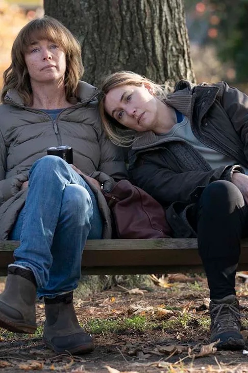 Una storia al femminile, verrebbe da dire, perché le donne, la loro vita carica di difficoltà per l’auto affermazione e le pari opportunità, con i loro rapporti complessi, la loro solidarietà e le loro piccole crudeltà, con il loro fardello di dolore che il più delle volte è soffocato come un singhiozzo nel petto, sono le vere protagoniste di una storia in cui gli uomini sono subalterni, meschini, pericolosi e spesso appena caratterizzati. Si può morire di dolore, oppure si può vivere e affrontare il peso di alzarsi ogni mattina e andare avanti, perché la ‘vita’ sopravvive, anche al dolore più grande. A tal proposito è interessante notare come la protagonista affronti la terapia psicologica a cui verrà obbligata a un certo punto della serie in modo propositivo, cogliendone le opportunità terapeutiche e dandole e dandosi un’opportunità, diversamente a quanto accade in molte serie dello stesso genere. Mentre in Mare, fiore che riesce a sbocciare in una nuova primavera di una vita che sembrava spenta sotto la neve perenne della sofferenza, Easttown è una cittadina che sembra sospesa in un eterno inverno, dove il freddo e il gelo penetrano nelle strade anonime e impersonali e nei cuori ibernati dei protagonisti, ognuno dei quali vive un qualche grande dolore personale: chi come Dawn urla la sua rabbia per la scomparsa in circostanze misteriose della figlia mentre combatte contro un cancro che la sta consumando e chi, come Lori, mantiene equilibri complessi all’interno della sua famiglia con una figlia affetta da Sindrome di Down da seguire, un figlio adolescente schivo e silenzioso e un marito che l’ha già tradita e ferita. E poi c’è lei, Mare, trascurata nell’abbigliamento e nell’aspetto sempre poco curato, i capelli legati senza vanità in una coda e coperta da abiti che sembrano sempre troppo grandi, quasi a nascondere il proprio corpo e una femminilità che rende fragili, attaccabili e vulnerabili. Cammina come un uomo, Mare, la sigaretta elettronica sempre tra le labbra, una bottiglia di birra sempre in mano e un rapporto quantomeno difficile con gli uomini che incrociano la sua strada e la sua vita. Eppure, sguardo dritto e deciso -ma mai crudele – Mare ‘veglia’ come un angelo su una comunità che spesso non le mostra riconoscenza, di cui conosce ogni segreto, debolezza e meschinità.