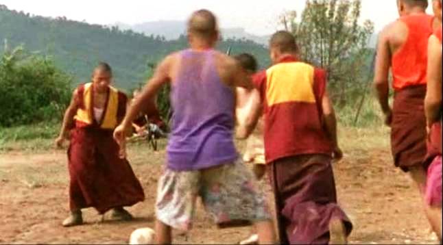 Dunque non importa sapere come finisce una storia, si diceva all’inizio; non resta che seguirne la narrazione. In questo caso ci interessa quel che avviene intorno alla palla di cuoio in questa singolare pellicola bhutanese di novanta minuti. In qualche modo misterioso ma semplice, ci intriga il confronto tra le parti che sotto il segno del Pallone si scontrano/incontrano in quell’angolo remoto dell’Asia, la successione delle azioni e delle reazioni, i messaggi che i giocatori si scambiano, e quelli che rivolgono a noi in dialoghi elementari, talvolta profondi. Il film è stato girato in un vero monastero. Ci sono monaci veri che interpretano se stessi con una recitazione naturale che meraviglia: concentrati e sinceri, al contempo ironici, sottili, improvvisano perfino, in scioltezza. I titoli di coda informano poi che si tratta di una vicenda realmente accaduta. Tra l’altro, il giovane Kunzang Nyima, rifugiato effettivamente nel monastero scelto come location, era arrivato là due settimane prima dell’inizio delle riprese, dopo aver perso il fratello e la sorella, caduti in un crepaccio ghiacciato dell’Himalaya nel tentativo di fuggire dal Tibet.
