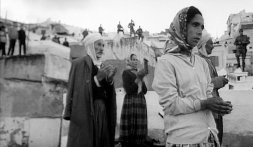 Pontecorvo invece affronta la questione coloniale, nella sua declinazione algerina, in modo frontale e diretto. Del resto viene dal gruppo di giovani attivisti più o meno legati al Partito Comunista Italiano, che hanno fatto la Resistenza e che hanno poi intrapreso, folgorati dalle opere di Rossellini (per Pontecorvo sarà la visione di Paisà a farlo dirigere definitivamente verso il cinema), una carriera cinematografica: Petri, Montaldo, Maselli ecc. Inoltre se le relazioni con la Francia restano ancora oggi problematiche, le relazioni tra l’Italia e l’Algeria indipendente si andarono sviluppando in un modo positivo (soprattutto grazie alla politica energetica di Enrico Mattei, improntata a rapporti di molto minor sfruttamento rispetto a quello delle grandi compagnie petrolifere mondiali) e questo consentirà a Pontecorvo di girare tutto il film in Algeria, ottenendo la collaborazione necessaria dalle autorità e dalla popolazione.