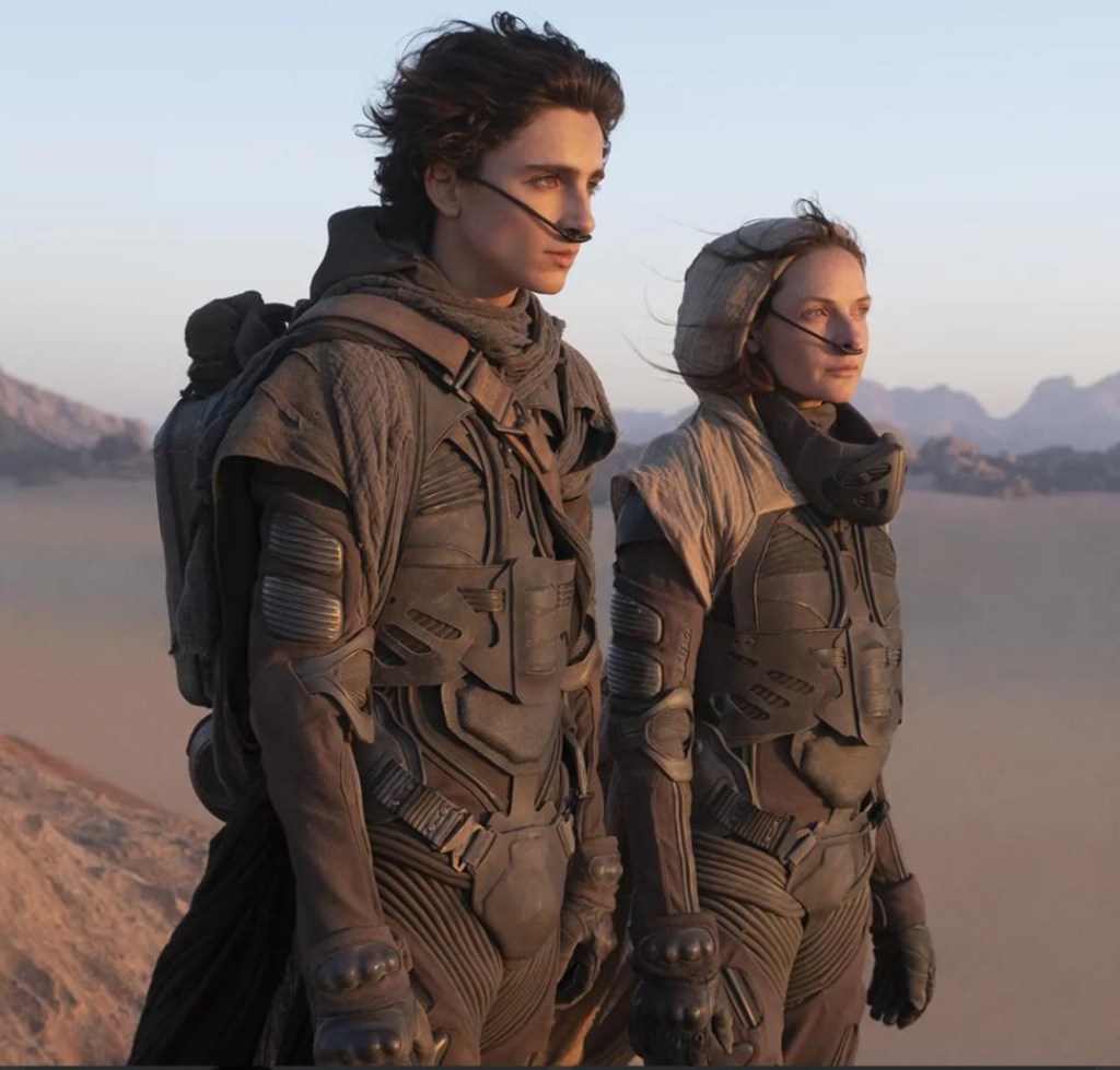 Uniformi, tute per il recupero dei preziosi liquidi, gli occhi azzurri dei Fremen dovuti alla spezia coesistono con i sogni, la luce dorata del deserto, il tempo dilatato e gli abiti leggeri che fluttuano al vento.