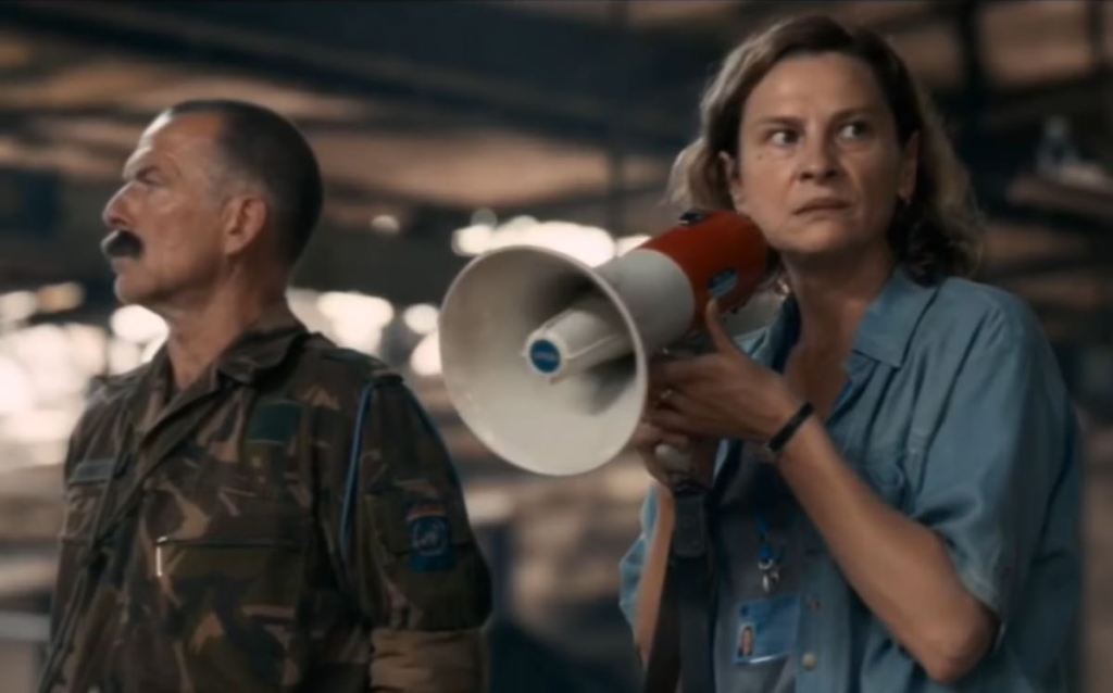 Una storia che l’ha scossa e ossessionata per anni, fino a quando forte dei quattro lungometraggi girati in precedenza, decide di affrontare di petto l’orrore, ispirandosi alla vicenda realmente accaduta al traduttore Hasan Nuhanovic per filtrarla attraverso lo sguardo di Aida (l’impetuosa e magistrale Jasna Djuricic), un’insegnante di lingua inglese sulla cinquantina, moglie appassionata e madre di due figli, interprete al servizio dell’ONU, catapultata nel posto sbagliato, al momento sbagliato. Un posto, l’accampamento delle Nazioni Unite sorvegliato dai caschi blu olandesi in teoria inviolabile, ma di fatto una terra di nessuno priva d’ identità. L’assedio delle milizie serbe, tra false promesse, dissennate negoziazioni e ultimatum fantasma si protrae per giorni, e culmina nella disastrosa caduta di Srebrenica, ufficialmente e falsamente considerata fino a quel momento “zona protetta”. Inizia così il lungo calvario dei rifugiati, costretti a lasciare la loro terra, a camminare per giorni, a separarsi dai loro cari per cercare un’illusoria salvezza verso un’istituzione mondiale che si rivelerà sorda e fallace. Nelle intenzioni della regista non vi è solo l’urgenza di raccontare le nefandezze di una strage annunciata, ma c’è la ferma volontà di far emergere una verità scomoda, opportunamente taciuta, che ha contribuito alla macabra realizzazione del più efferato genocidio europeo dal secondo dopoguerra.