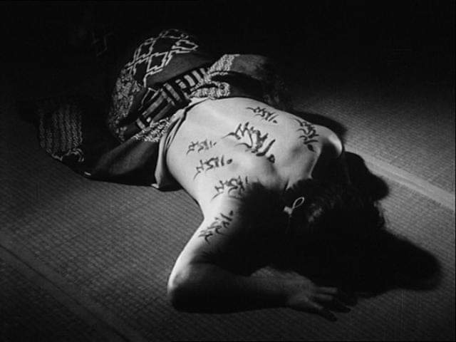 Molto significativo in tal senso il capolavoro assoluto di Mizoguchi (Ugetsu monotagari, conosciuto in Italia come I racconti della pallida luna d’agosto), che dopo la vittoria nel 1953 del Leone d’Argento a Venezia ebbe vasta e crescente risonanza in occidente: un’opera in cui i fantasmi appaiono più carnali e sensuali dei vivi, acquistando voglie perdutamente terrene e paure umanissime (un po’ come sarà molti anni dopo per i replicanti di Blade Runner), perdendo la loro tipica “aura spettrale” e l’aria esangue ed impalpabile delle ombre dell’Ade (al punto che proprio le ombre proiettate dai loro corpi sulle cose e su altri corpi ne infittiscono il mistero e l’equivoco). Nessuno spiritello fatuo appare in Mizoguchi e da quel momento in tanti altri kaidan-eiga (i film giapponesi ispirati a leggende popolari di fantasmi), nessuna ripartizione netta tra la riva dei vivi e quella dei morti; tutti i personaggi del suo film (di qua e di là della morte) sembrano muoversi e ondeggiare fra l’elemento carnale e quello spettrale, lungo un confine che sfuma come nel magistrale piano-sequenza in cui i protagonisti in fuga dai saccheggi della guerra su un’imbarcazione lungo il fiume si fanno sempre più evanescenti nella solidità della nebbia, e non capiscono se il moribondo incrociato su un’altra imbarcazione sia un fantasma o un superstite.