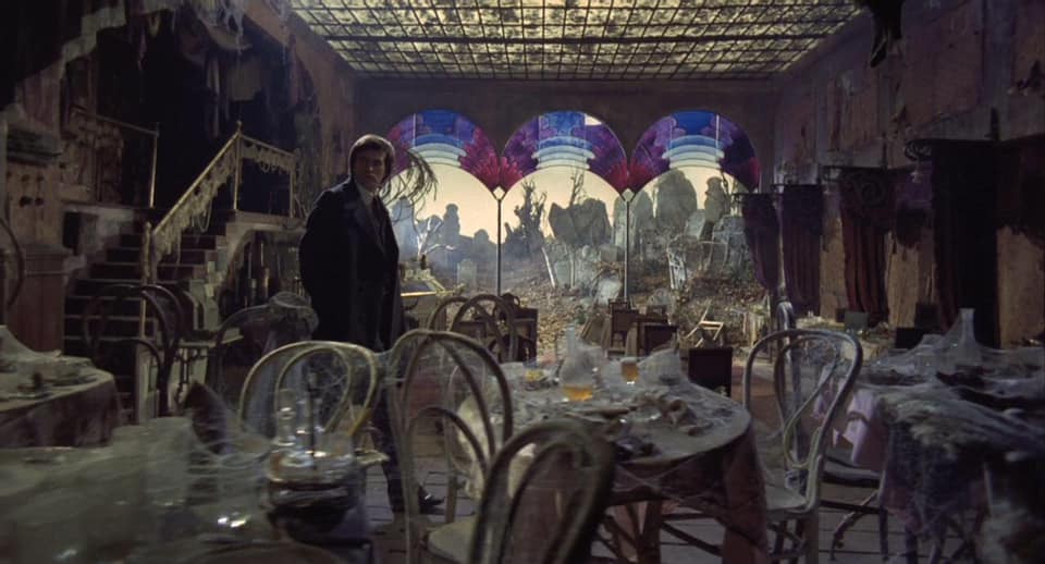 L’edificio quindi è una sorta di tempio magico che apre le porte a un continuum tra vita e morte, dove il tempo è scandito e confuso dai ricordi e dai sogni dei personaggi, una sorta di rivalsa su “un tempo consumato, consumato da altre persone, un tempo malandato pieno di buchi, come un setaccio” e dove ognuno ha il potere di ripercorrere in maniera illogica la propria esistenza, riattivando il tempo già trascorso e le infinite possibilità del passato.