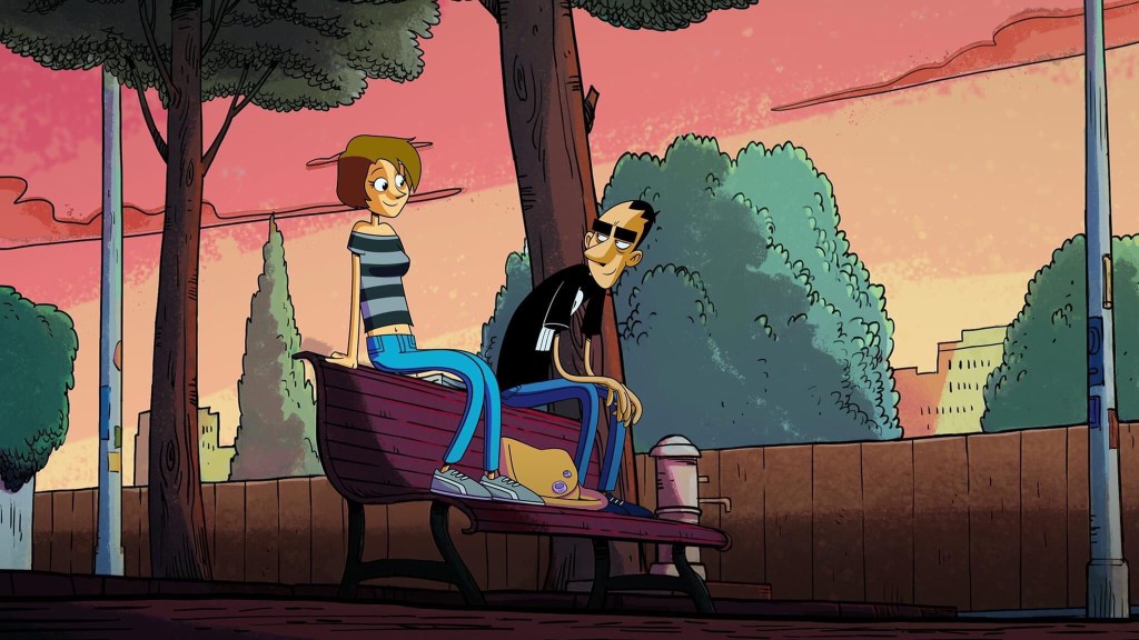 Presentata alla Festa del cinema della sua Roma, rilasciata come di consueto tutto insieme il 17 novembre sul canale streaming Netflix, la serie di Michele Rech è già nella storia dello spettacolo italiano, destinata a diventare un classico perché individua ansie, frustrazioni, disillusioni non di una, ma di due generazioni, quella degli anni ‘70 e quella degli anni ‘80, ma lo fa con rispetto e tenerezza, regalando al pubblico un’esperienza sensoriale completa, come l’ha definita il suo autore, che cura anche la colonna sonora scegliendo pezzi coerenti col testo – immagini e sceneggiatura- che ne intensificano il gusto. Pezzi anni ‘80, sigla affidata a Giancane (che aveva già scritto Ipocondria per la serie sulla quarantena, Rebibbia quarantine), brani pop degli anni Ottanta e Novanta, da Ron al rap francese a Tiziano Ferro passando per gli M83. “Spettatore veterano”, appassionato a sua volta di serie tv e cinema, Rech replica la linea compositiva orizzontale della Profezia dell’armadillo, ora come allora inserendovi i singoli episodi, e lo fa con grande consapevolezza e cura: dei disegni, precisi fin nei minimi dettagli, della regia, della storia. Il messaggio è che siamo leggeri, troppo, che continuiamo a fare e farci del male, e lo facciamo con quel sarcasmo che in linea teorica dovrebbe renderci la nostra inadeguatezza più accettabile, ma con un residuo di amarezza che non passa. Frasi che sono già antologia, “master in pippe mentali” e atavico, inutile senso di colpa, dibattito gender, G8, psicanalisi e linguaggi inclusivi, filosofia greca, tutto condensato in puntate brevi, concentrati di una filosofia morale e di una Weltanschauung frammentaria ma evidente: abbiamo la possibilità, nel brevissimo arco di tempo che la Moira ci concede, di vivere secondo i bordi che sono stati tratteggiati dalle convenzioni e dai dettami della società borghese, o scegliere lo sguardo laterale sulle cose che ci permetterà di disegnarci da soli la silhouette ideologica, etica, affettiva più autentica, ancorché precaria, possibile.