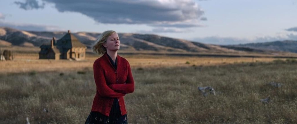 Nonostante il suo comportamento rude e scortese (chiama suo fratello “Fatso”, “Grassone”), Phil sembra molto più coinvolto di George nella relazione fraterna. Malinconico e nostalgico del passato, l’uomo intrattiene il gruppo dei loro mandriani con i racconti su Bronco Henry, loro ex mentore, una sorta di eidolon morto da tempo e ormai quasi mitico che viene a guastare il presente come uno spettro di desolazione e repressione; George, invece, riluttante a soffermarsi sul passato come fa Phil, sembra non ricordare quei presunti giorni felici, e manifesta una sottile insoddisfazione per lo stato attuale delle cose. Il discreto, quasi blasé, decoro di Plemons è un perfetto contrasto con l’arrogante spavalderia di Cumberbatch: la tensione nella loro relazione è evidente attraverso la dinamica attentamente costruita tra gli attori e sottolineata dalla colonna sonora di Greenwood. Quando i fratelli portano il loro bestiame in una città vicina, dove loro e i lavoranti soggiornano in una locanda di proprietà della vedova Rose (Kirsten Dunst), che la gestisce con suo figlio adolescente Peter (Kodi Smit-McPhee), George prende in simpatia Rose, e Phil osserva questi sviluppi con sgomento e un atteggiamento via via più molesto nei confronti del figlio di lei, colpevole di aver servito gli allevatori con un panno bianco drappeggiato sul braccio.