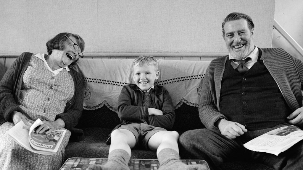 A più di vent’anni di distanza da Nel bel mezzo di un gelido inverno, piccolo gioiellino imbevuto di teatro e finito inspiegabilmente nel dimenticatoio Branagh abbandona la superproduzione per tornare a un cinema più intimo e “sentimentale”. Nel farlo si affida nuovamente a un sacrale bianco e nero, quasi a voler sottolineare un distacco e un rispetto non solo formale nei confronti di un passato anche cinematografico, ( Mezzogiorno di fuoco e L’uomo che uccise Liberty Valance sono lì a ricordarcelo) irripetibile. Le pennellate di colore sono riservate alla modernità di una Belfast che apre il film e che ricorda molto da vicino le Streets of Philadelphia di Bruce Springsteen. Qui il regista irlandese sceglie di stemperare la tensione attraverso il misticismo di Van Morrison, contrapponendo la sua musica ad un clima di guerra che Branagh tiene volutamente fuori dalle sue istantanee, al fine di non “sporcarle”, ma che tende comunque a rimarcare attraverso i martellanti notiziari provenienti da radio e tv. Nel descrivere la sua penultima regia cinematografica confessa con disarmante pudore che Belfast è il suo film più intimo e personale quello in cui il legame affettivo con il luogo e con la gente del posto ha probabilmente “fatto esplodere il suo cuore”. Nonostante alle volte serpeggi una silente sindrome da primo della classe il film più che un’operazione nostalgia è da considerarsi un sentito omaggio “per coloro che sono rimasti, per coloro che sono partiti e per tutti coloro che si sono persi”.
