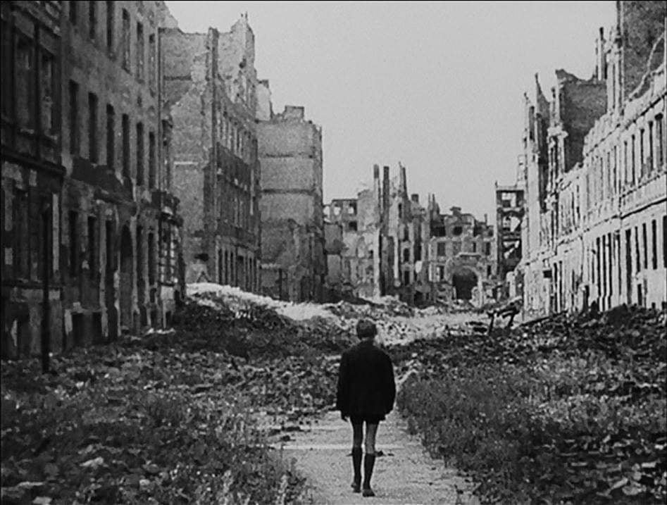 Utilizzando attori non professionisti, con pochi mezzi, improvvisazione e uno stile sublime, Rossellini racconta lo sfacelo di una città che diventa, sin dalle prime inquadrature, simbolo di una condizione più generale, un mondo ormai disintegrato, in dissoluzione. Berlino ingombra di macerie non è altro che lo specchio di un disfacimento morale di un’umanità alla deriva, diventa la proiezione delle ferite profonde presenti nell’animo di una creatura innocente.