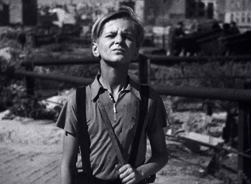 La guerra lascia deserti gli animi umani, li riempie di cinismo e di spietata lotta per la sopravvivenza. Le testimonianze strazianti del dramma collettivo – gente in coda ai negozi di generi alimentari, bambini che giocano a piedi nudi sulle macerie, la spartizione della carne di un cavallo morto – si alternano con tocchi sublimi e poetici presenti nel girovagare senza senso del bambino alla ricerca di cibo ma anche di comprensione e conforto.