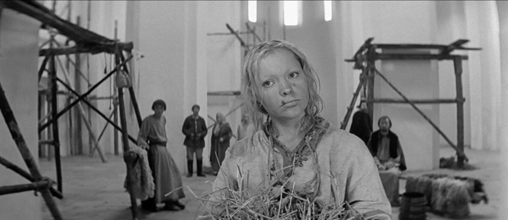 Le figure femminili hanno un ruolo centrale nella formazione di Andrej. Nell’episodio “La passione secondo Andrej”, la neve copiosa del paesaggio russo rende quasi onirico il calvario del Cristo. Eppure la Maddalena che lo tocca con ardore quasi sensuale, cosi come la bambina che lo guarda ridendo – come se fosse consapevole della sua imminente resurrezione – donano alla scena un’umanità e una verità straordinarie. Se la figura della Folle Santa ha la essenziale funzione di strumento per farci comprendere l’ambivalenza del bene e del male – scappa con i Tartari, e questo è ciò che ci si aspetterebbe da lei, ma poi ricompare al primo rintocco della campana di Boriska vestita con abiti da vestale, radiosa e sorridente, rivelazione della totalità e dell’infinito – la bellissima donna pagana, nuda e attraente, tenta di sedurre Andrej con un bacio definendo l’Amore come ‘tutto uguale’ e non peccaminoso perché carnale. Lei è parte di un mondo basato su valori lontanissimi da quelli di Andrej, mentre la Folle Santa è parte integrante del suo mondo e ne condivide l’anelito spirituale. La festa pagana in cui incontra la donna pagana turba profondamente Andrej perché egli si rende conto che coloro che dovrebbe catechizzare sono lontanissimi da lui e i suoi messaggi non arrivano come lui li intende. È per questo che quando gli viene chiesto di rappresentare il giudizio universale con tutto il suo corredo di peccato e castigo, egli non vuole. E in un momento di rabbia, getta della vernice su una parete della chiesa creando degli schizzi che in parte ricordano le opere di Pollock: arte moderna che confonde ed estranea il fruitore, nell’ottica di Tarkovskij espressione auto riferita e masturbatoria dell’ego dell’artista, non latrice del messaggio che vorrebbe diffondere Andrej. La Folle Santa piange e si dispera, comprende che Andrej sta smarrendo la strada e funge quasi da monito vivente per l’artista.
