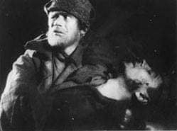 Questa riflessione emerge nel film in due scene importanti: quella che vede protagonista il rappresentante del nuovo governo che, una volta acquisito il comando alla caduta dello Zar, pronuncia discorsi pieni di retorica mentre ha già pronti i contratti per cui gli industriali, che cercano un nemico per avere un nuovo mercato, si sfregano le mani. L’altra scena mette in primo piano uno dei protagonisti del film, Kadkin, un artigiano con folti baffi che ha due figli al fronte e ha dato lavoro nel suo sobborgo ad un prigioniero tedesco. Quando riceve la notizia della morte del proprio figlio minore e del grave ferimento del figlio maggiore proprio ad opera dei soldati tedeschi, Kadkin non è animato da nessuna vendetta nei confronti del giovane ragazzo tedesco, sa che, al di là di tutto, anche il ragazzo è figlio di un altro padre che a migliaia di chilometri di distanza è in penosa attesa di notizie e di fronte a chi vorrebbe che gli si faccia del male risponderà con una delle battute più significative del film: “Che importa se è tedesco? È un bravo calzolaio!”