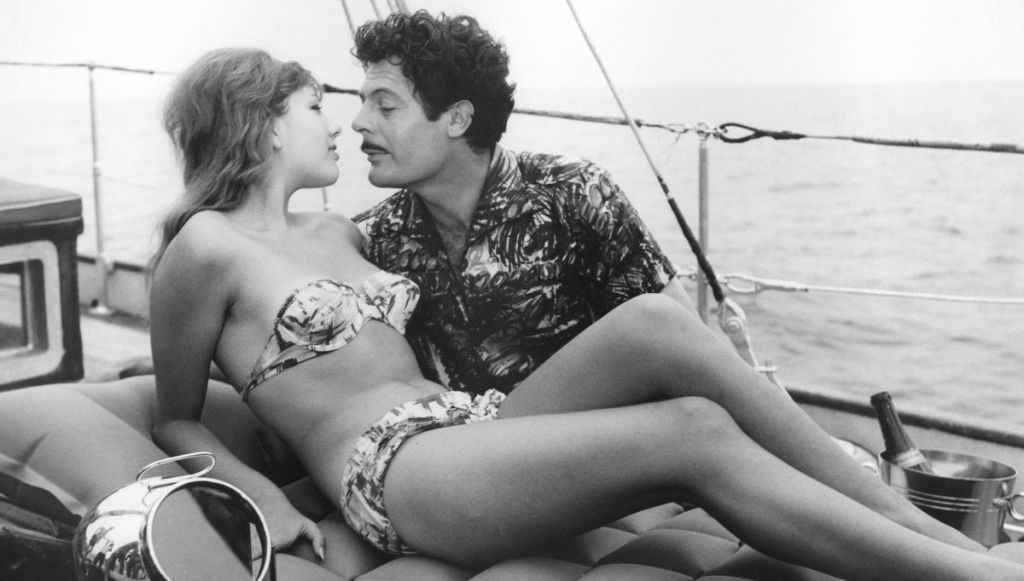Se il Fefè pubblico e quello privato si affrontano negli specchi, nei bagni e nei luoghi pubblici, c’è una sfida che si svolge idealmente anche tra il personaggio che Mastroianni interpreta in Divorzio all’italiana e il personaggio che lo stesso attore interpreta ne La Dolce Vita, la proiezione del quale è un evento a cui accorrono tutti gli abitanti di Agromonte. Il cinico e sofisticato giornalista romano de La dolce vita insegue (non visto) Anita Ekberg, in un’improvvisa infatuazione. In quello stesso momento, l’aristocratico siciliano Fefè – aspirante cinico e finto-sofisticato – insegue la moglie per le stradine del paese, con l’intento di coglierla in flagrante.