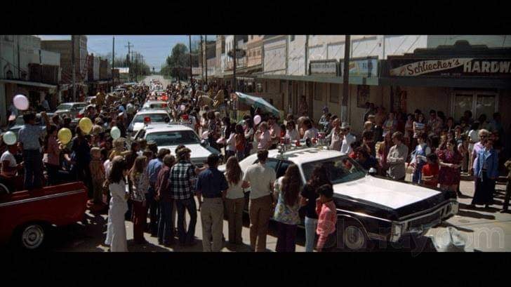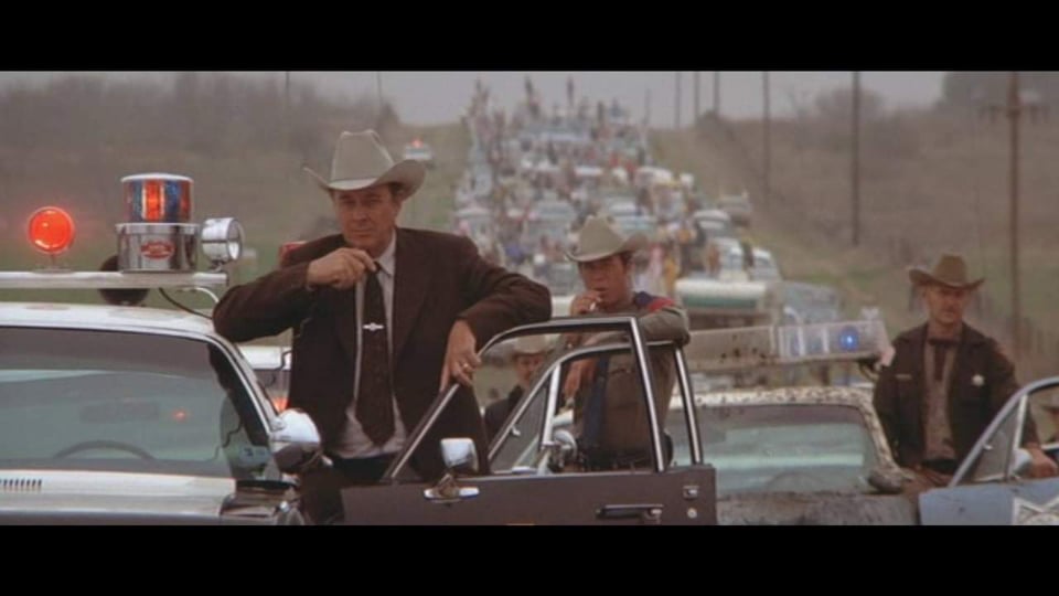 Girato tutto in esterni, sulle strade texane, il film ci mostra, come nella tradizione del road-movie, ponti, pompe di benzina, parchi di auto usate, drive in; ma ad un certo punto concentra la sua attenzione nei confronti della folla che si assiepa ai lati delle strade e dei mass media che fanno di tutto per creare clamore intorno all’evento.